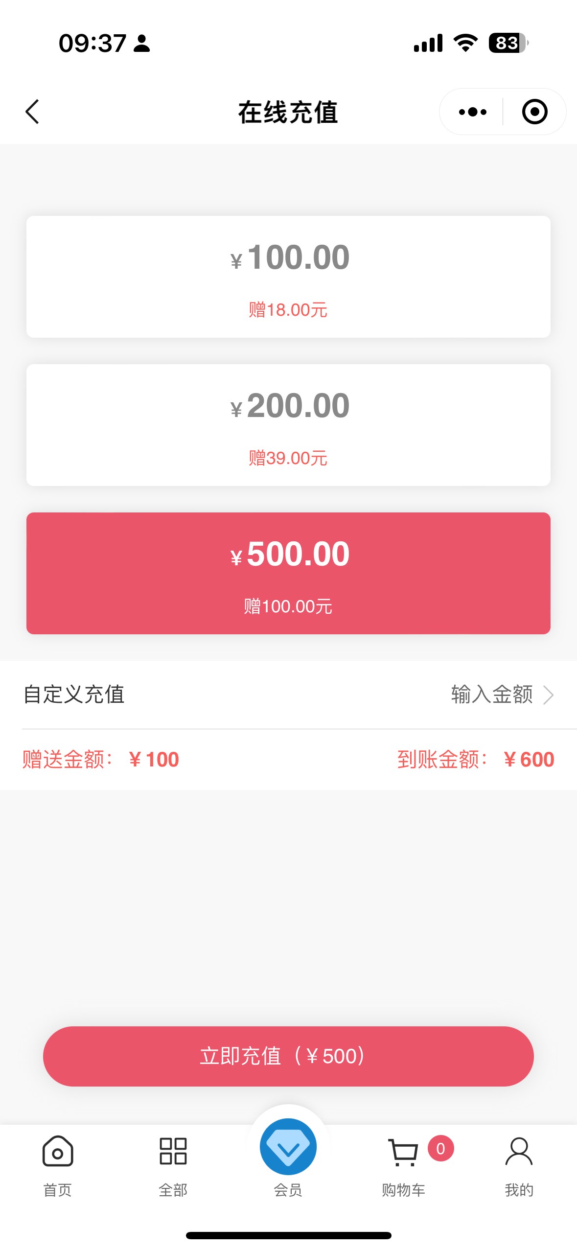 功能描述:用户进行储值时,根据储值金额的不同,可获得相应比例的赠送金额。