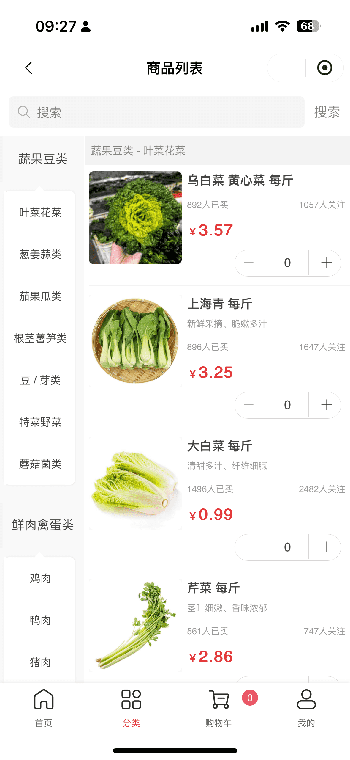 分类逻辑:按品类(蔬菜、肉类、水产)、场景(火锅食材、宝宝辅食)、产地(有机农场、进口)等多维度分类,方便用户快速定位需求。