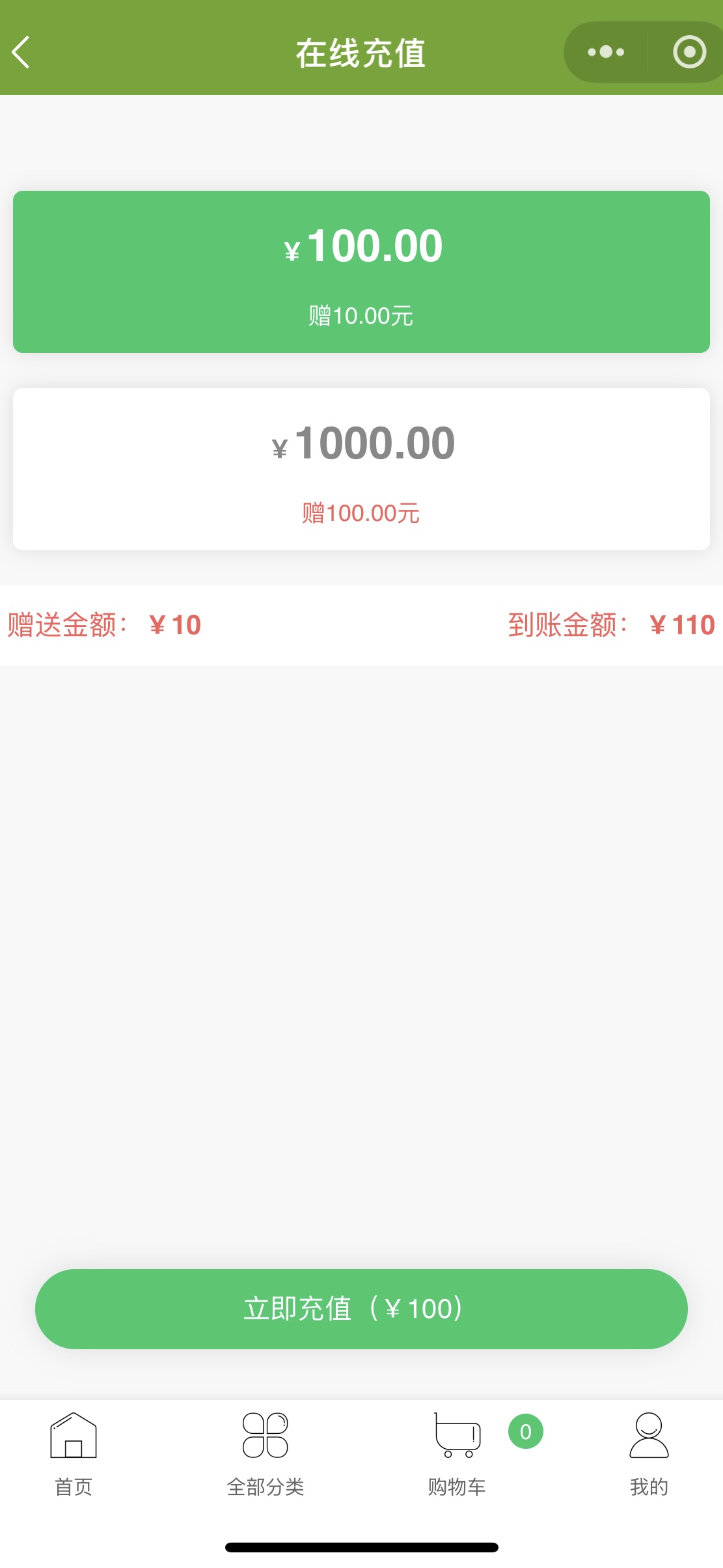 小程序提供充值优惠功能,用户充值后可享受额外优惠或赠品。