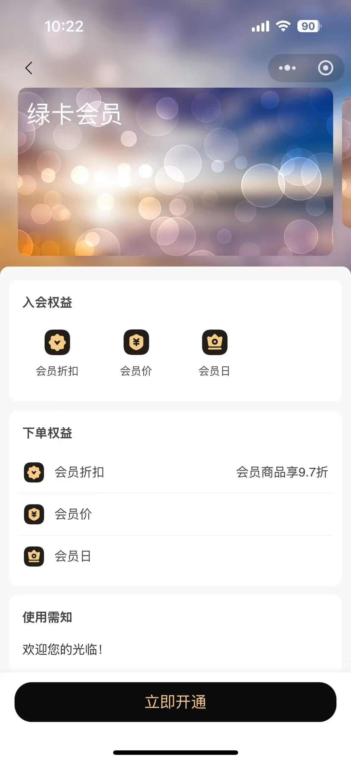 会员类型:支持四种会员卡场景,包括无门槛领取的体验卡、累计消费达标的成长卡、付费购买的年卡(如月卡、季卡、年卡),以及针对高价值客户的专属内部卡。