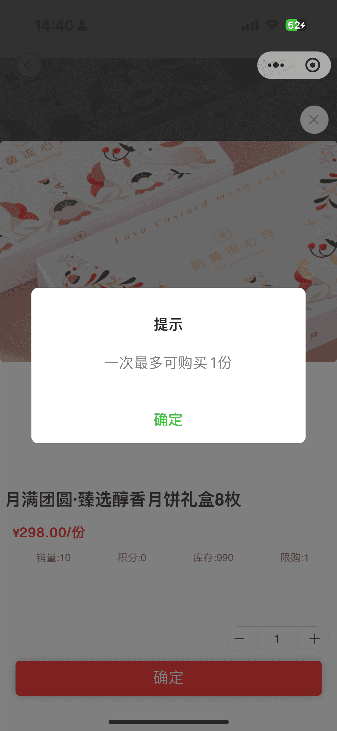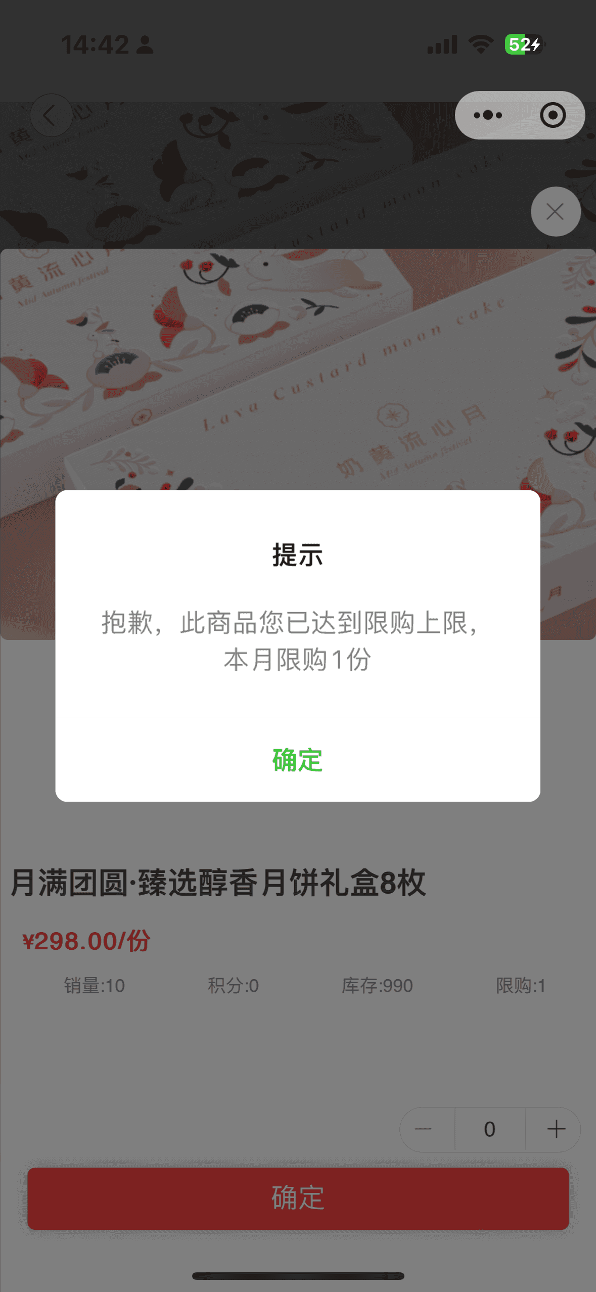 示例:某品牌面膜“双11活动限购2盒”,活动结束后重置。