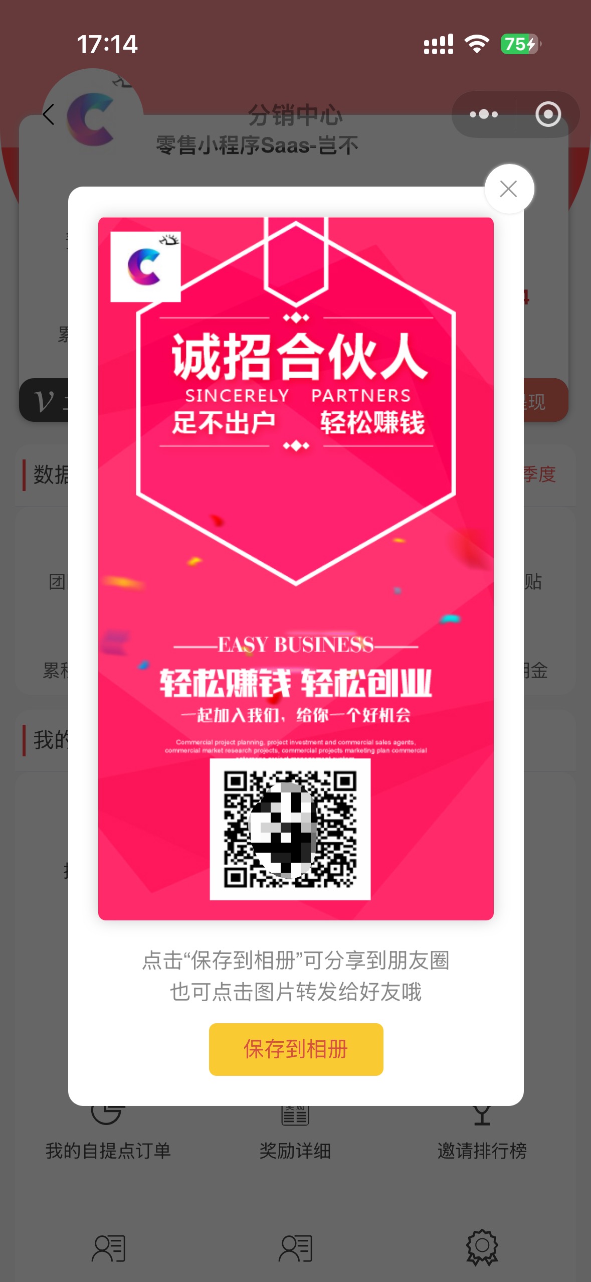 形式:系统生成带分销商ID的唯一二维码(可自定义背景、LOGO等)。
