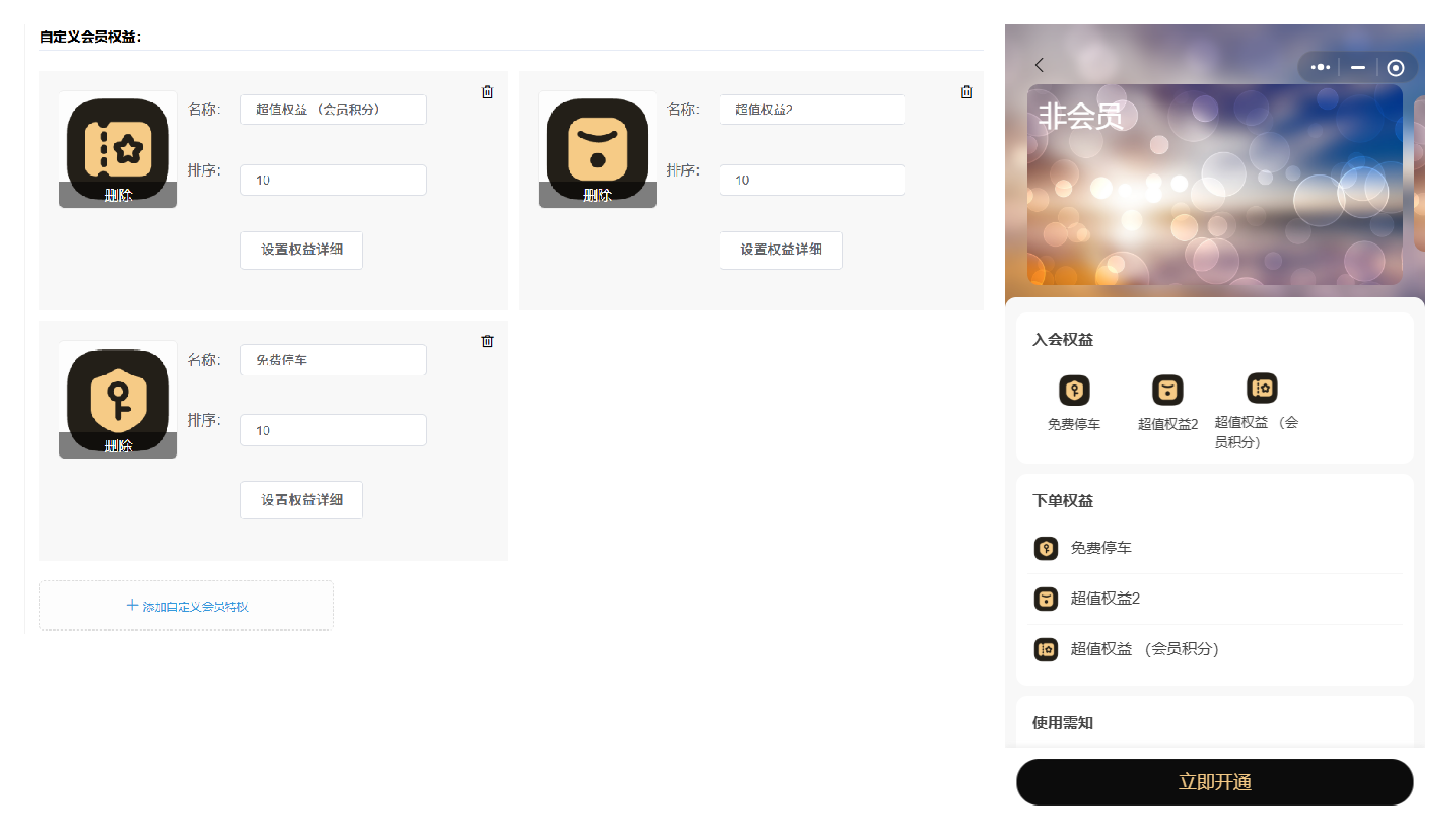 提供行业通用权益模板(如零售、美业、教育),商家可一键套用或修改。