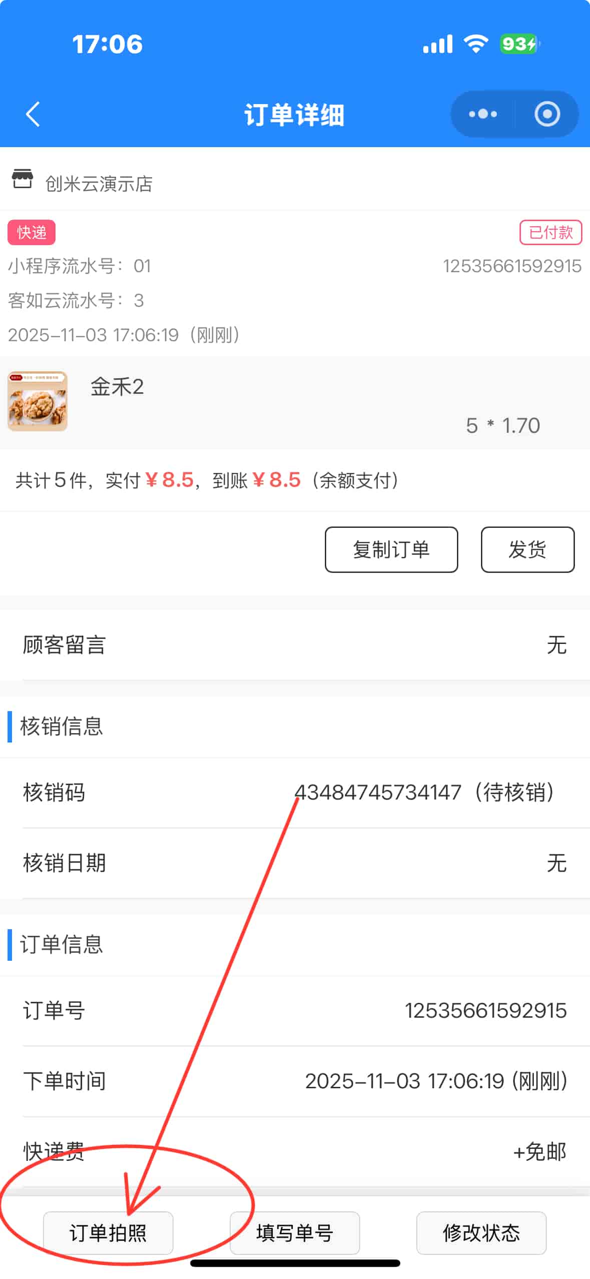 在订单详情页嵌入「上传照片」按钮,支持多张照片批量上传(如发货单、商品包装、物流面单等)。