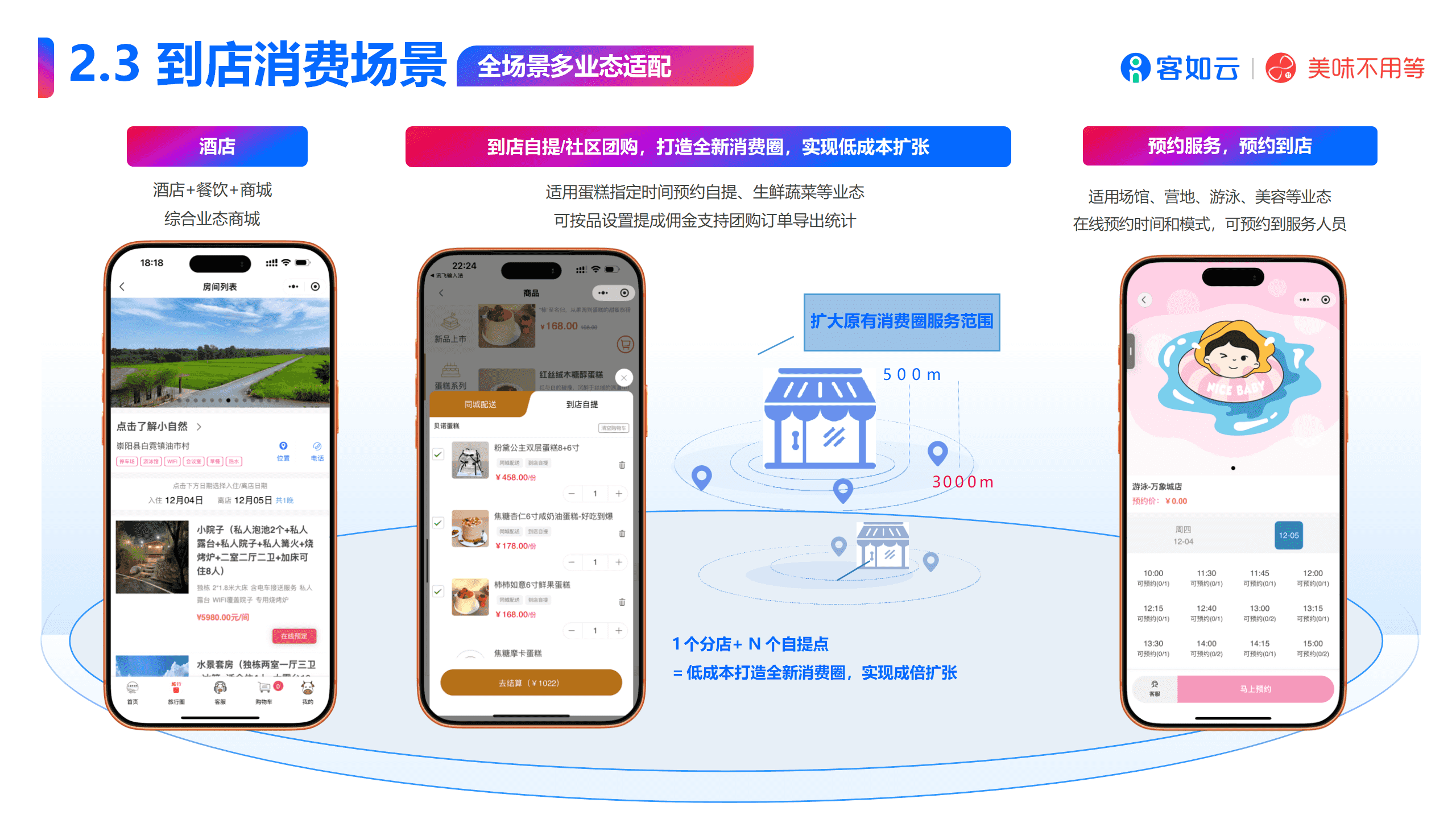 全场景覆盖:从线下门店到线上商城,从到店服务到离店配送,满足商家多元化需求。