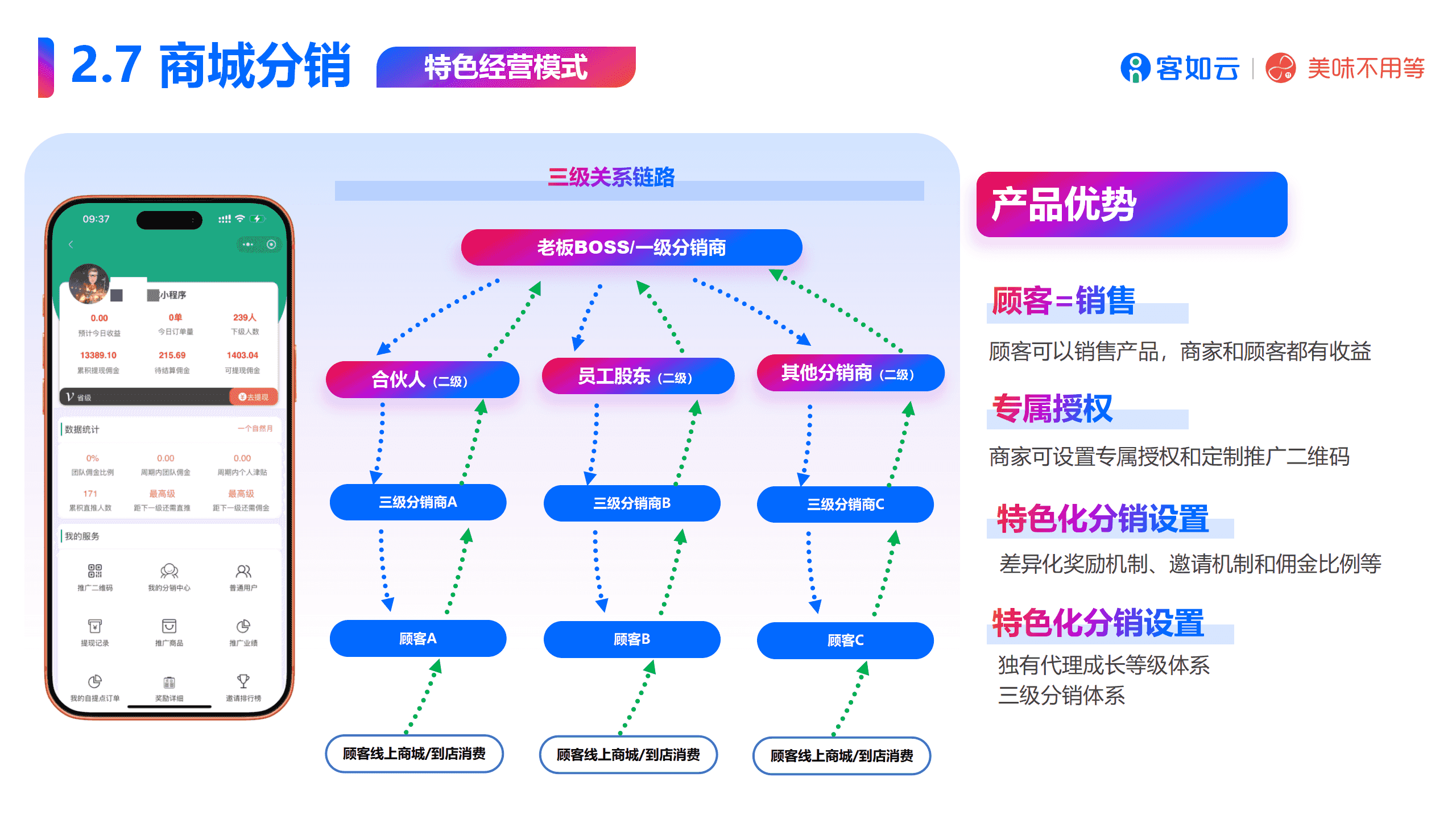客如云智慧分销商城是一个深度融合线上线下业务、实现全域触达与高效运营的综合性解决方案,其核心功能与优势如下: