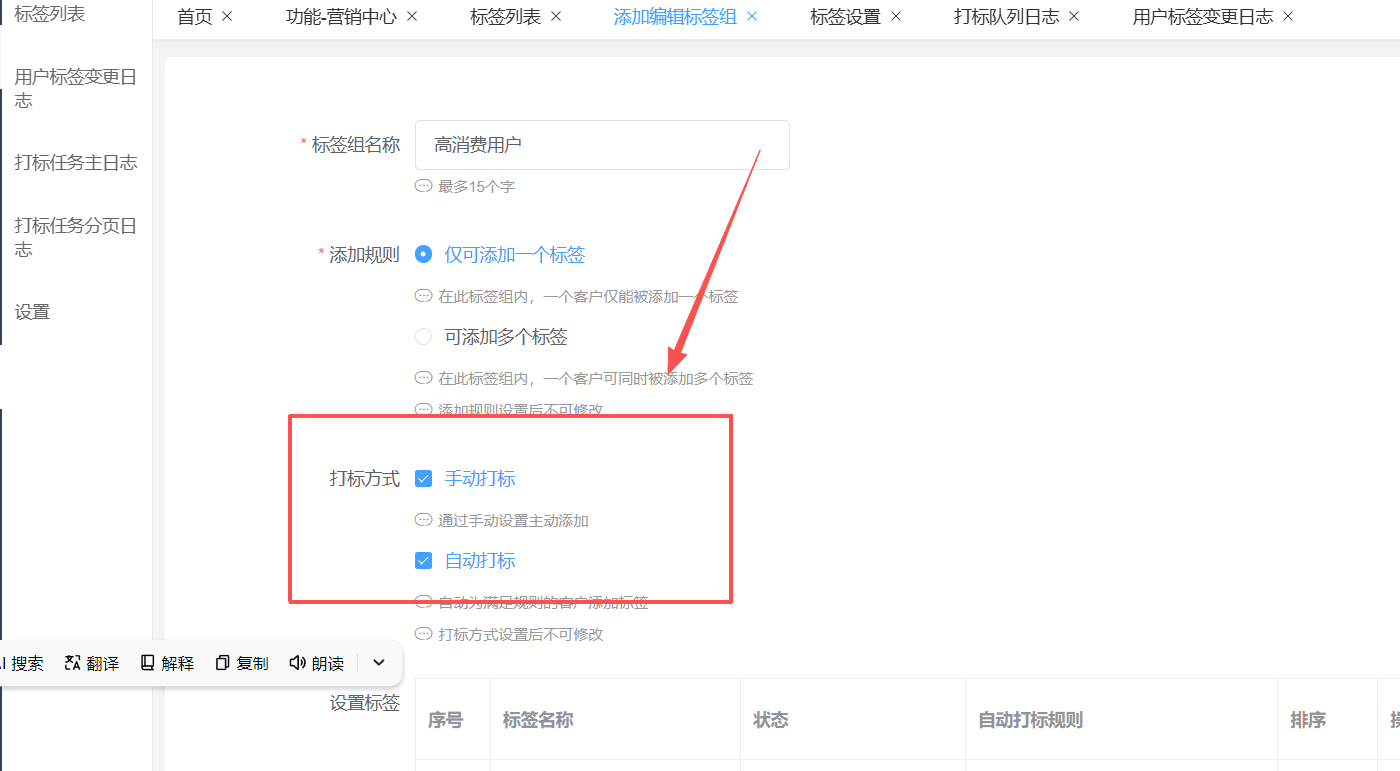 利用系统自动打标功能,快速为用户分配基础标签。