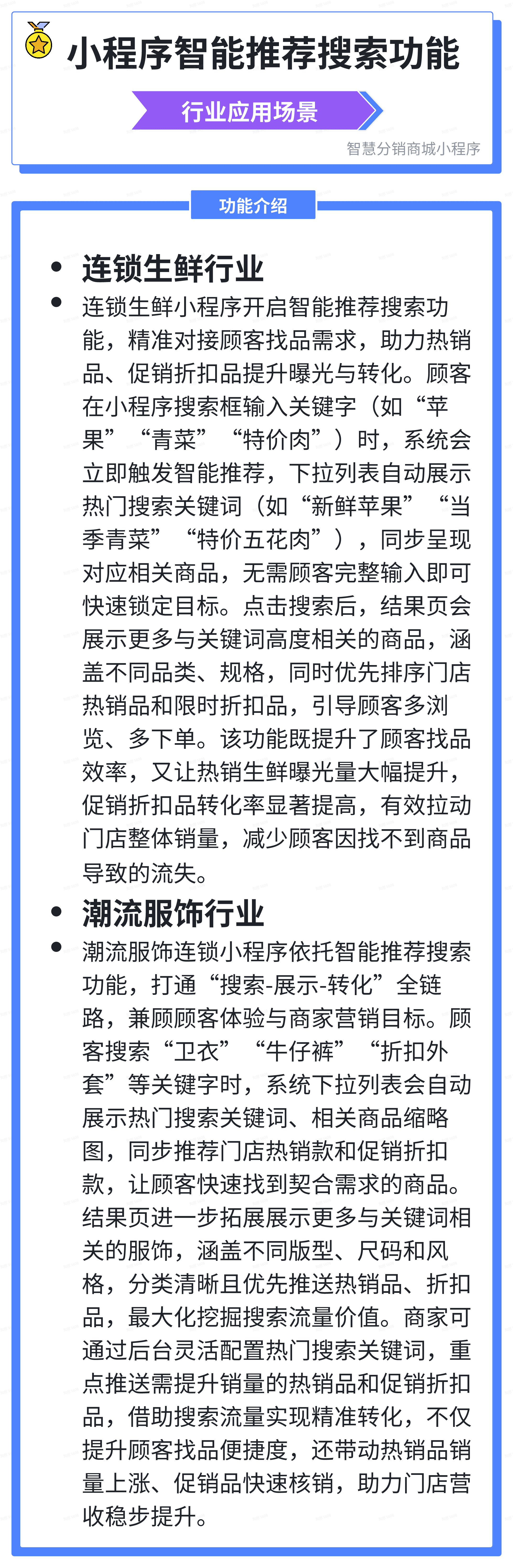 通过智能推荐搜索,商家可实现从“人找货”到“货找人”的转变,在提升用户体验的同时,最大化流量价值与销售转化。