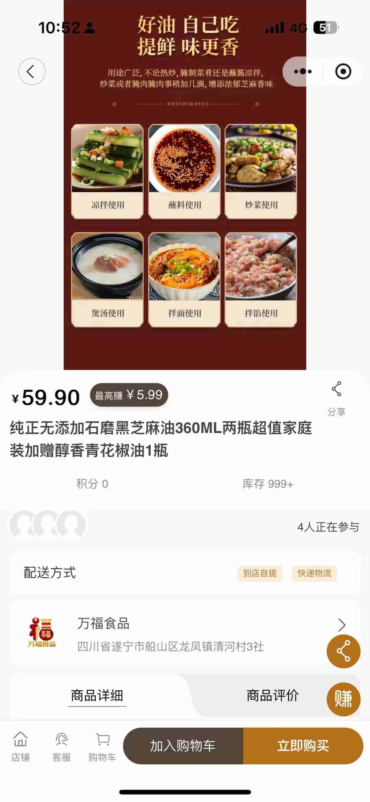 限时秒杀:每日固定时段(如20:00-21:00)推出“9.9元秒杀芝麻油”活动,制造紧迫感,配合“分享给好友可延长秒杀时间”规则扩大传播。