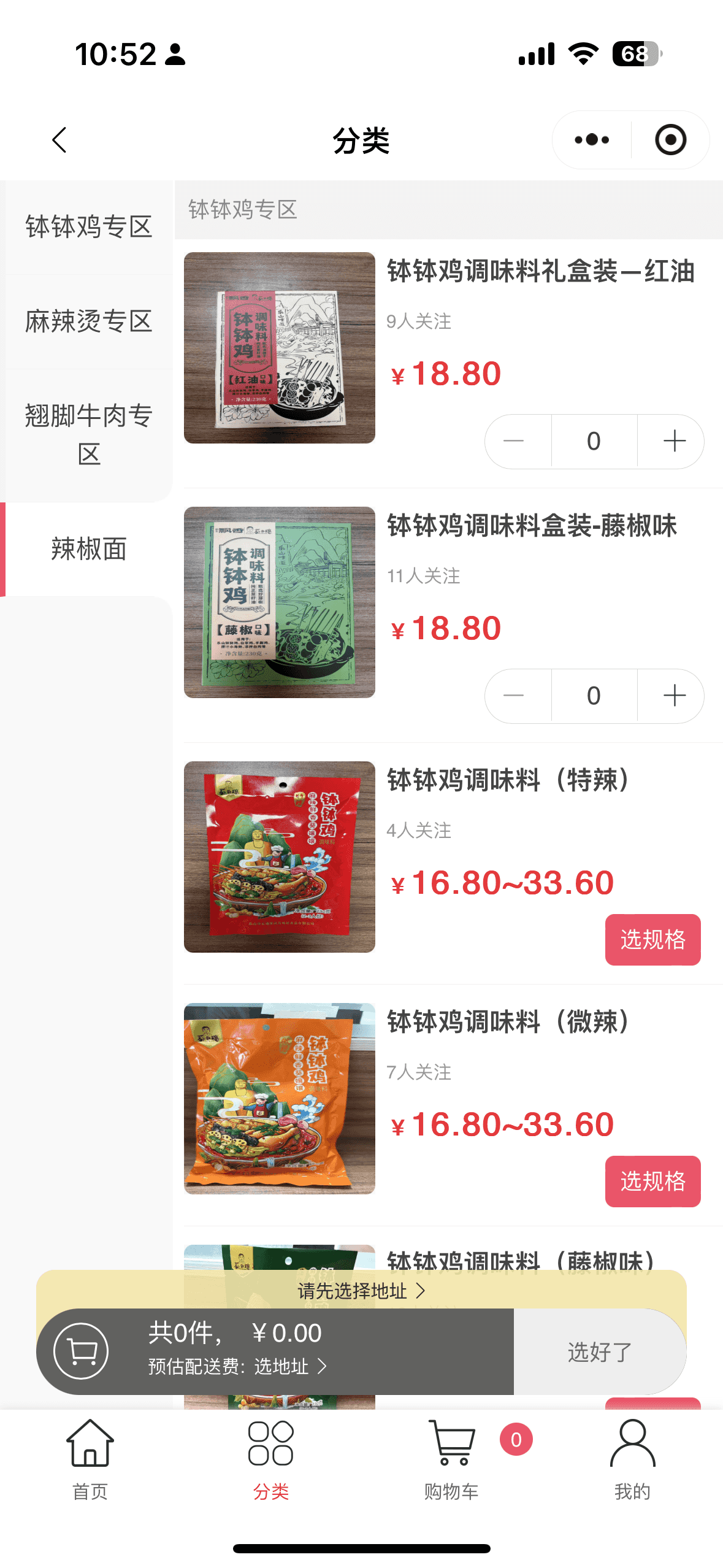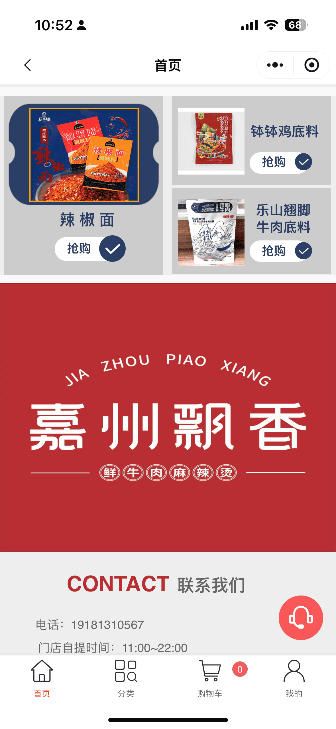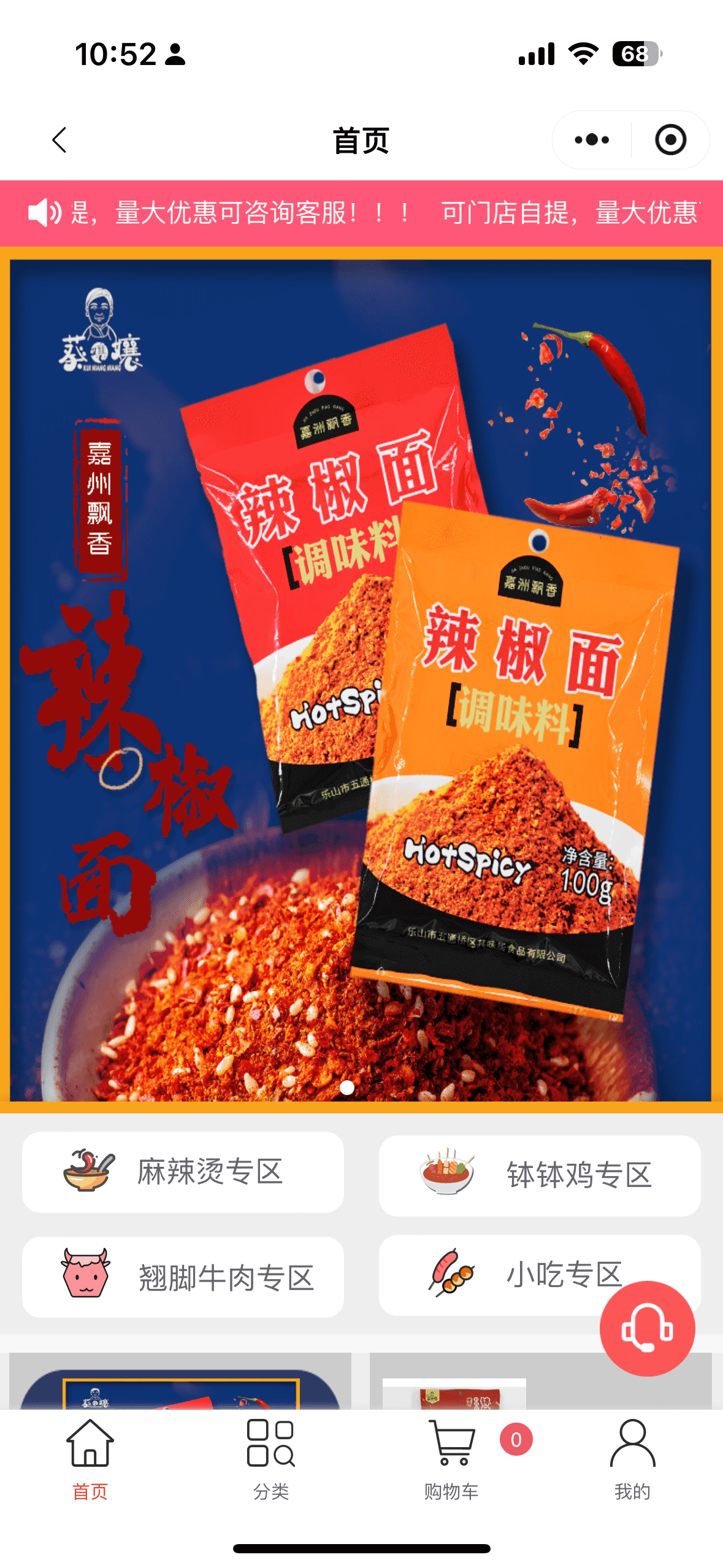 功能:集中展示川味调味料及底料(如串串香底料、火锅底料等),支持限时抢购、满减优惠等促销活动。