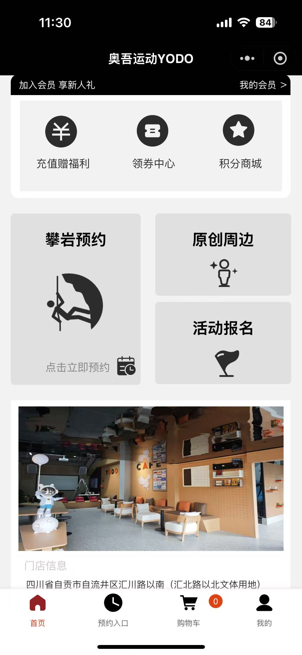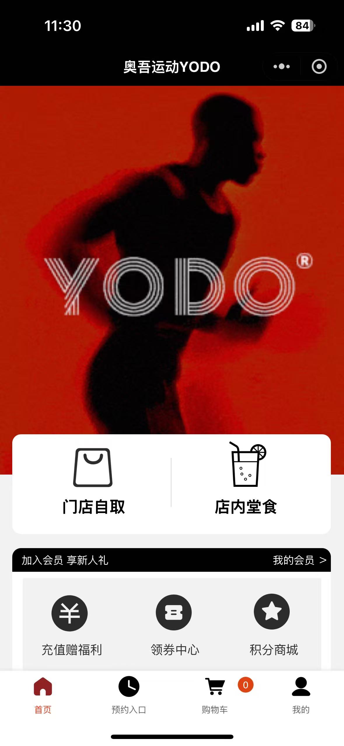 奥吾运动YODO小程序以“运动+生活”为核心,通过模块化设计整合三大业态:
