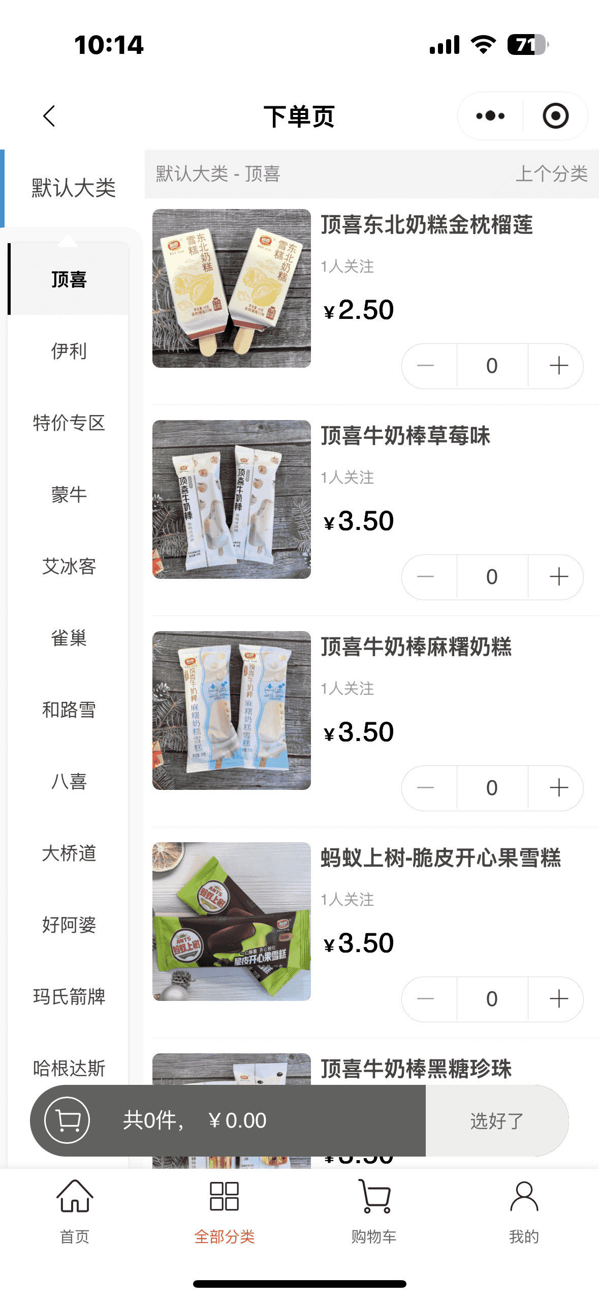 智能分类:按品牌(如和路雪、钟薛高)、口味(巧克力、水果味)、场景(家庭装、便携装)等分类,快速定位心仪商品。