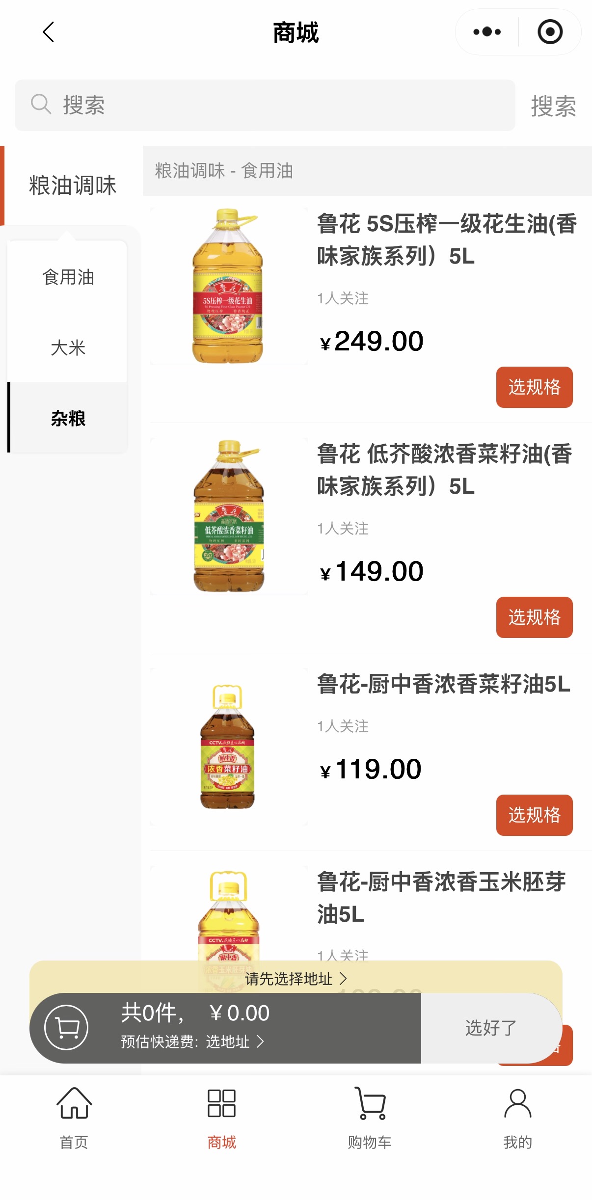 一级分类:按商品类型划分(如食用油、调味料、粮谷)。