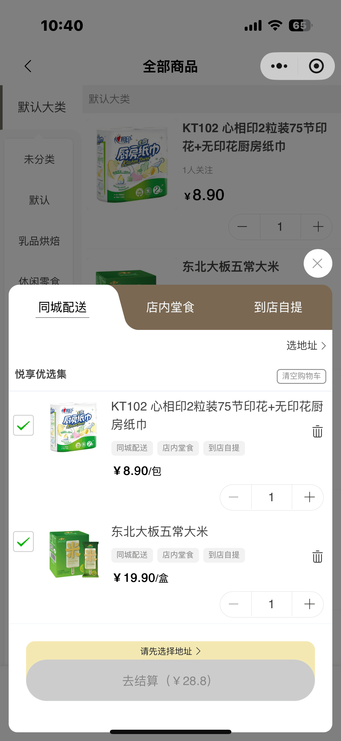 用户发现家中纸巾用完,通过小程序搜索“纸巾”,选择“同城配送”,30分钟内送达,解决即时需求。