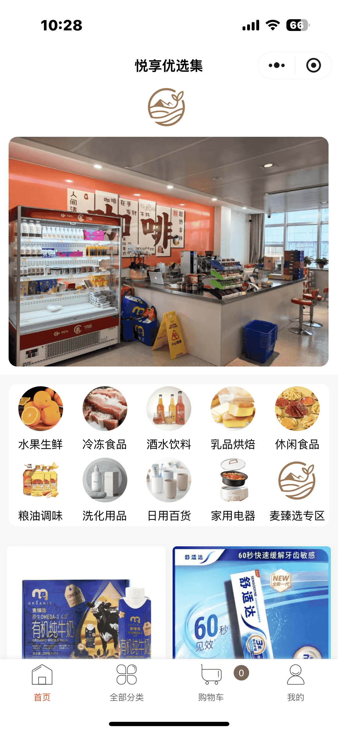 用户早上通过小程序“早餐专区”快速选购面包+牛奶,选择“到店自提”,到店扫码取餐,节省排队时间。