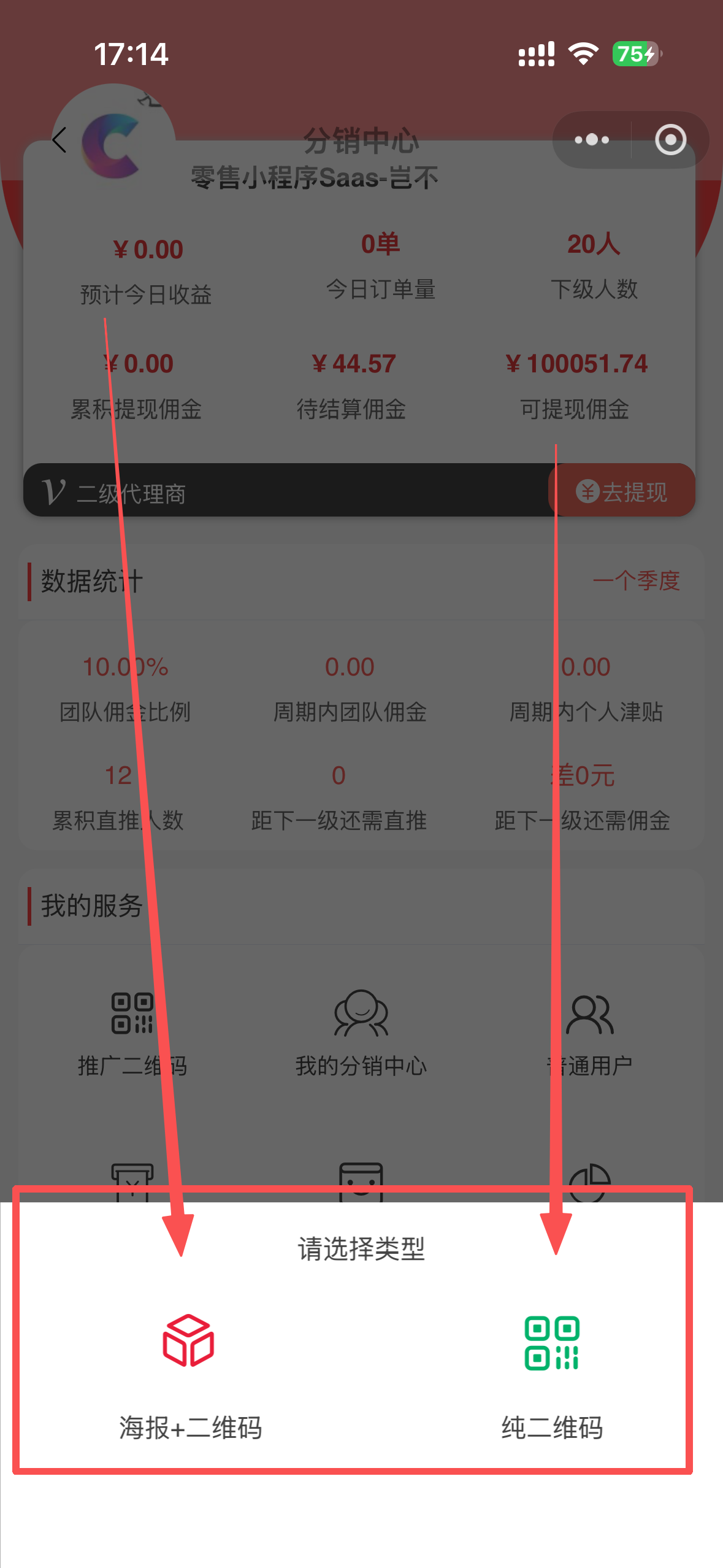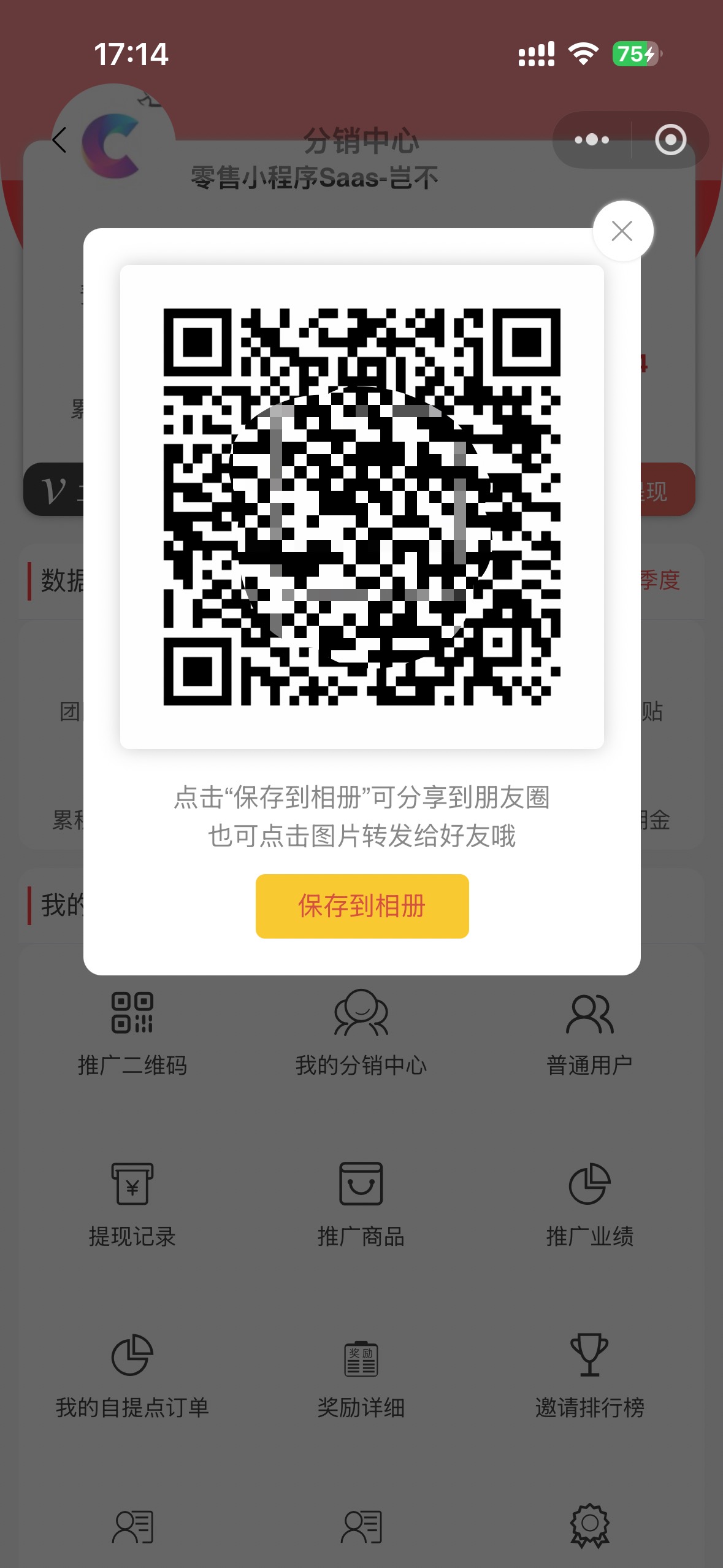 入口:分销商在小程序后台或个人中心点击“生成推广码”。
