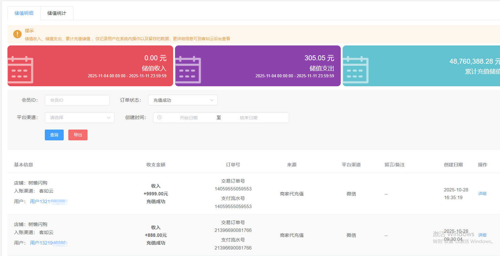 自定义报表:可按需求选择导出字段(如仅导出高净值用户储值记录)。