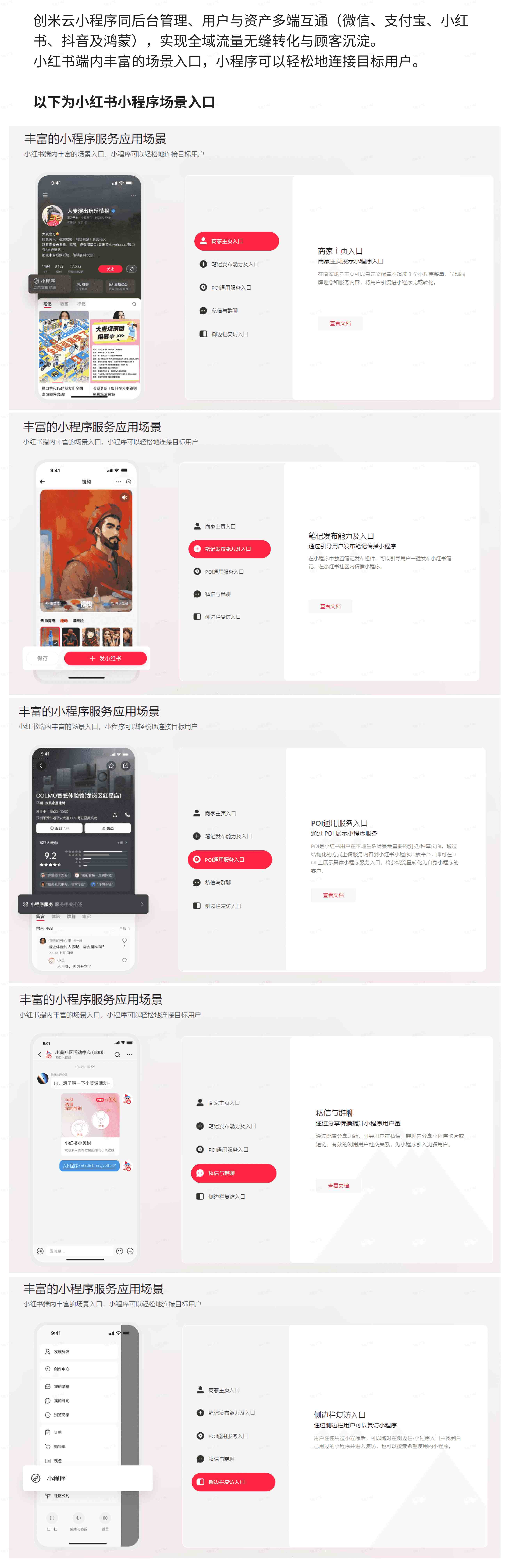 小红书小程序作为社交电商生态中的关键一环,其场景入口的多样性与流量聚合能力为商家提供了高效的用户触达与转化路径。以下从核心优势、场景入口、流量价值及运营策略四个维度展开分析,助力商家精准把握平台红利: