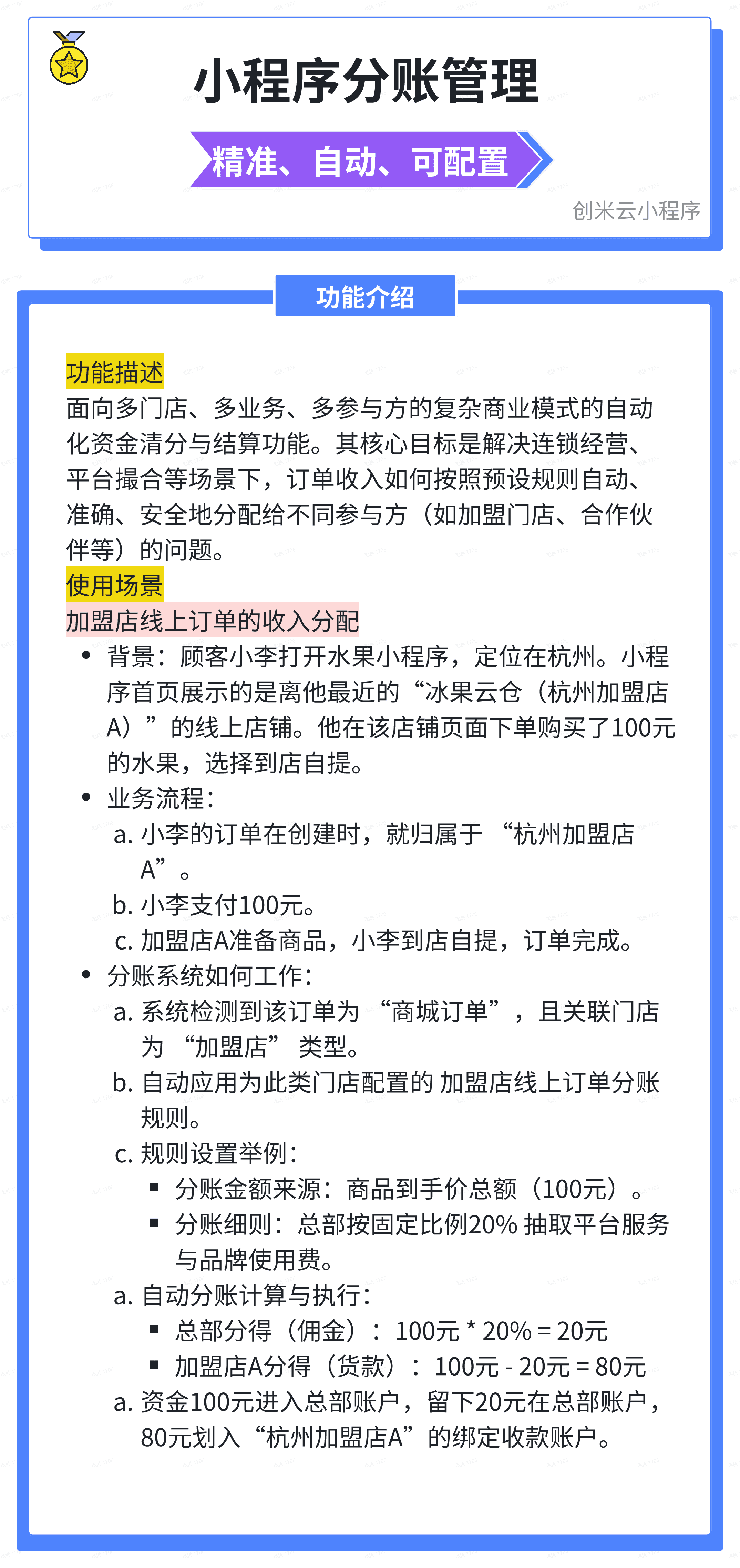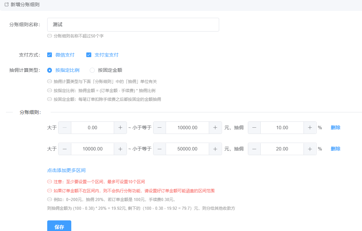 灵活性:这些规则可以根据实际业务需求进行灵活设置和调整,满足不同场景下的分账需求。