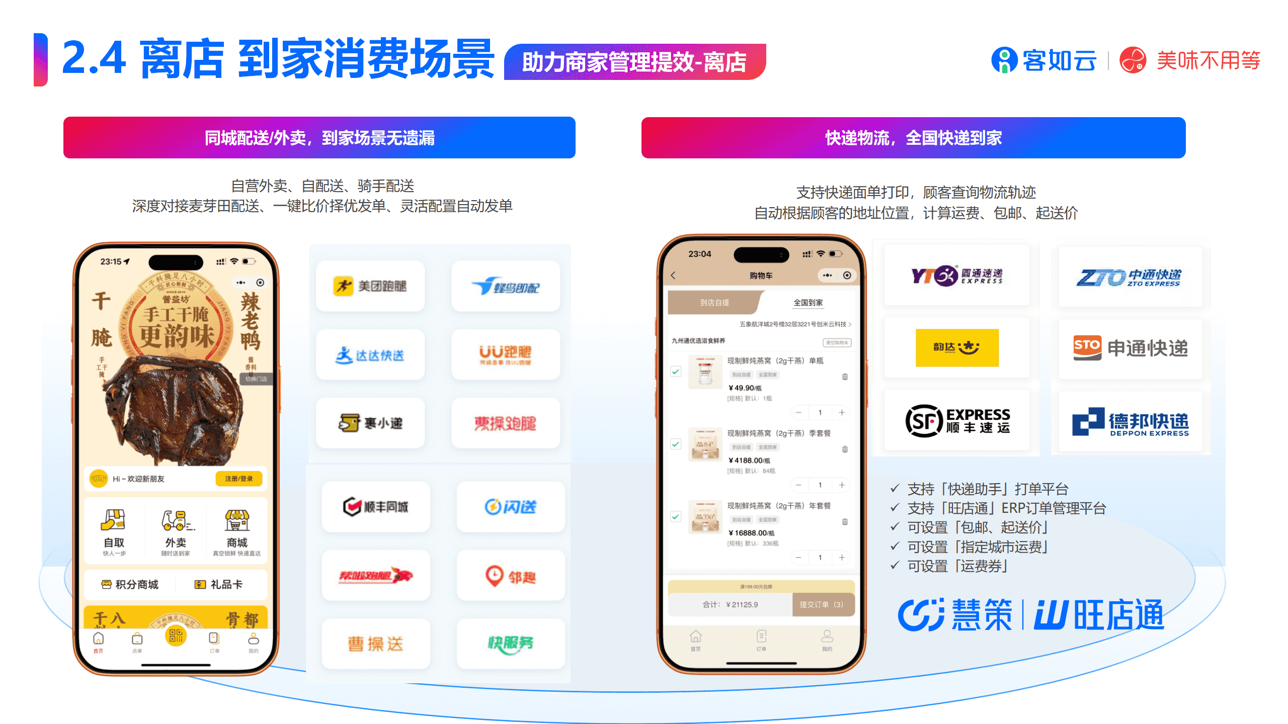 全场景覆盖:从线下门店到线上商城,从到店服务到离店配送,满足商家多元化需求。