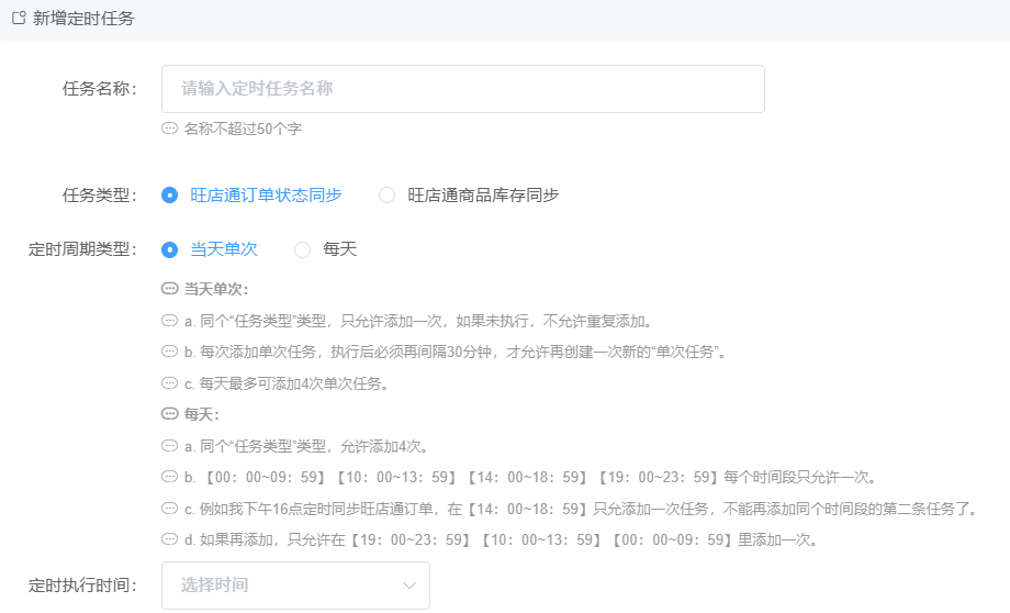 组合任务:同时创建多个任务,分别同步不同类型的数据(如订单状态与库存分开同步)。