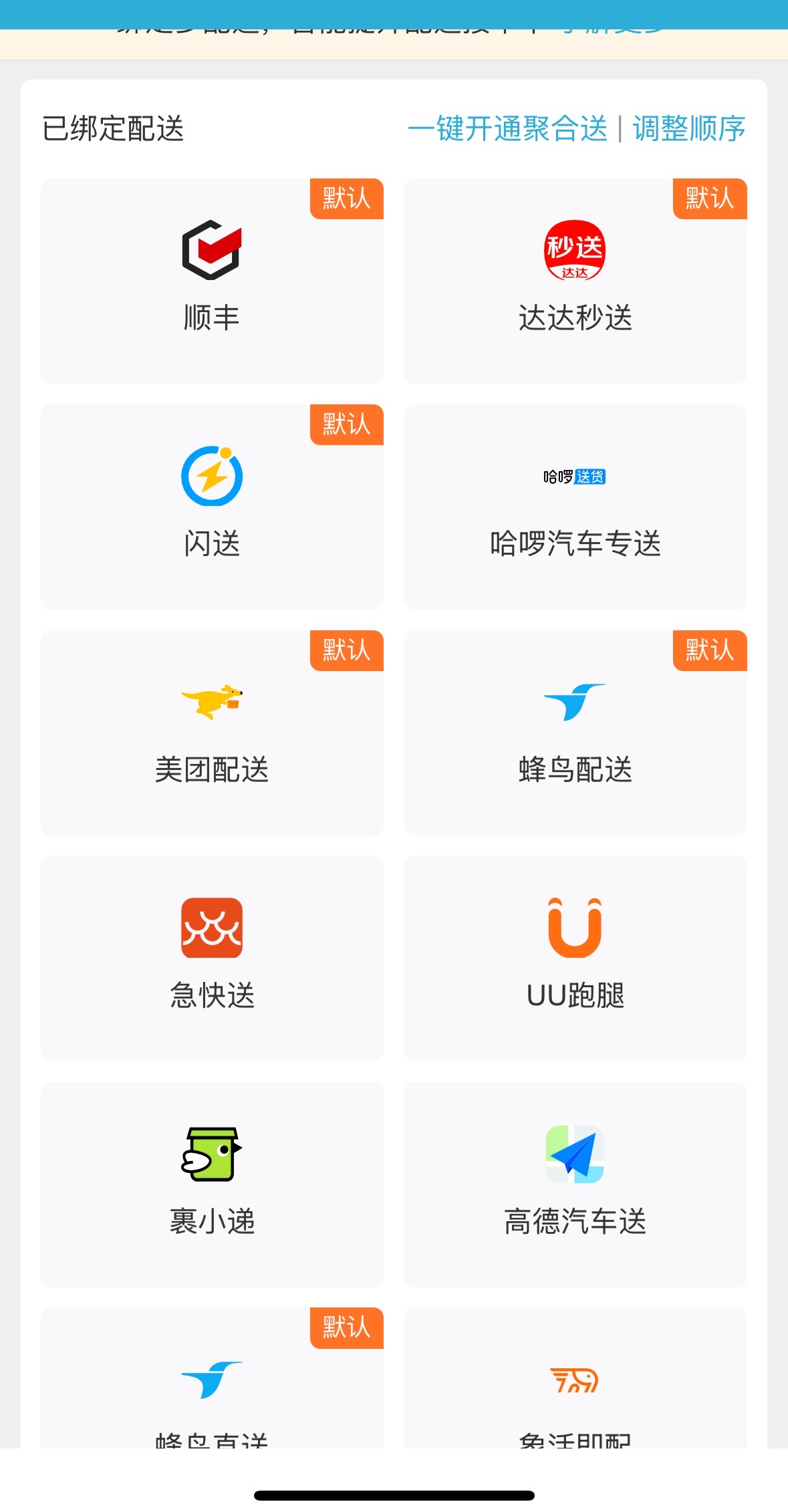 配送设置:配置配送范围、时效模板(如“3公里内30分钟达”)、自动发单规则(如“优先选择价格最低平台”)。