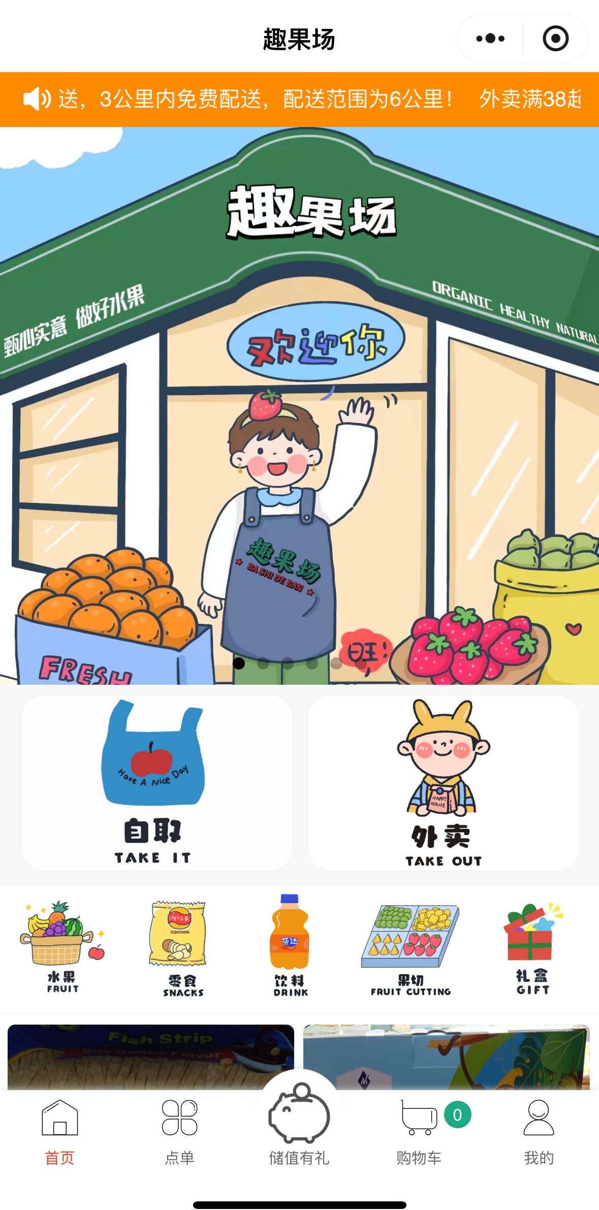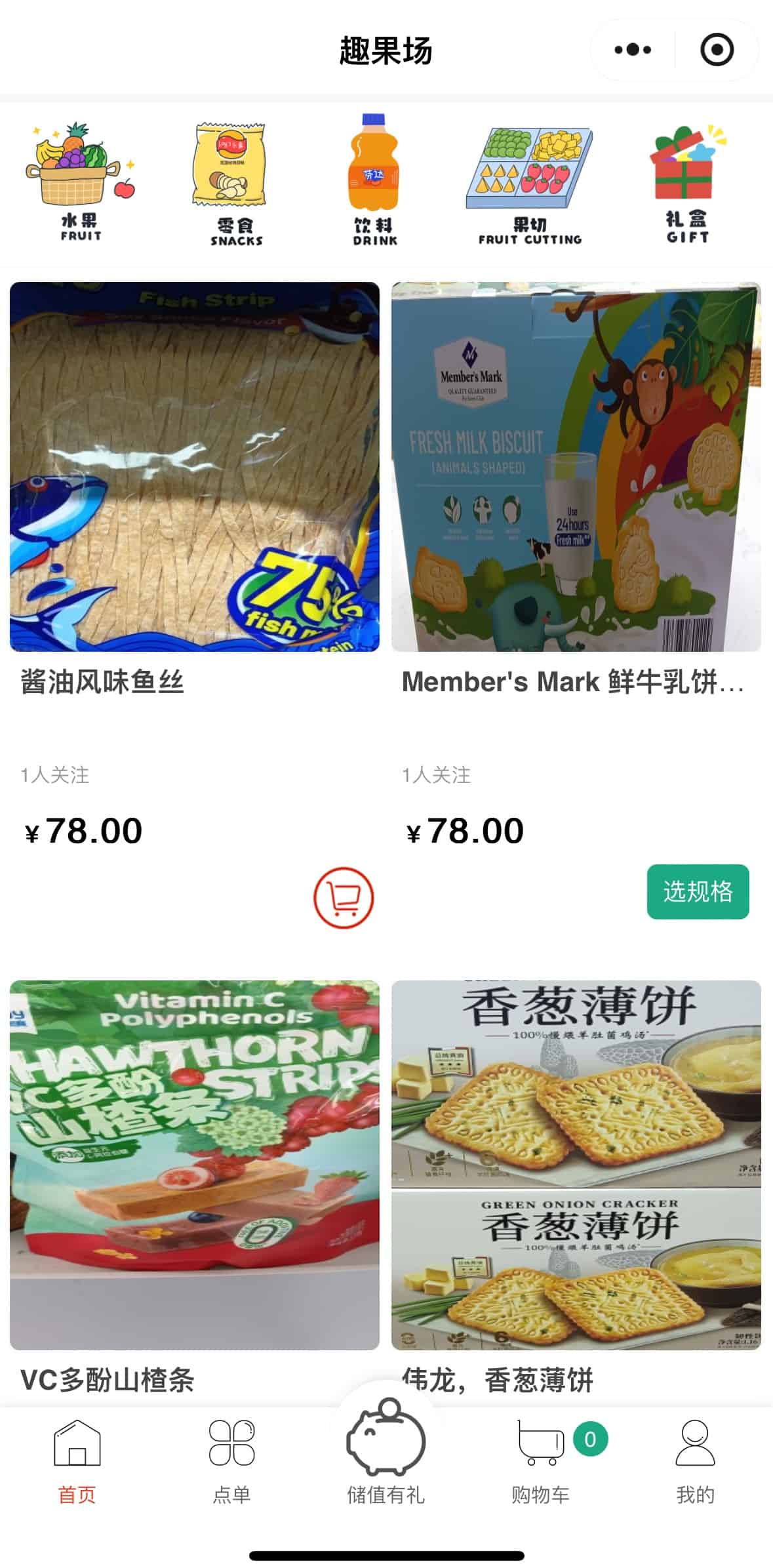 趣果场小程序以水果为核心品类,通过精选全球优质水果(如进口车厘子、热带果王等)建立用户信任,同时延伸至零食(坚果、果干)、饮料(果汁、茶饮)、轻食(沙拉、酸奶)等高频消费品类,形成“水果+健康零食”的场景化消费组合。例如: