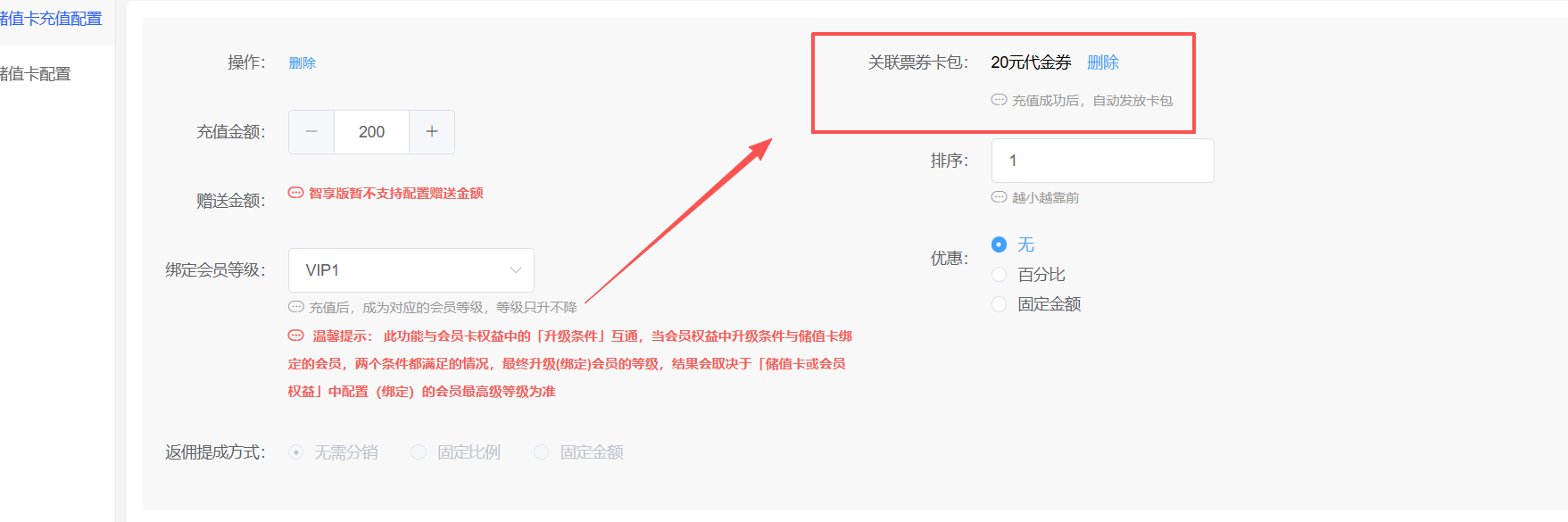 商家还可以根据储值卡的充值金额设定不同的票券绑定规则。例如,充值金额越高,绑定的票券价值越大或数量越多。