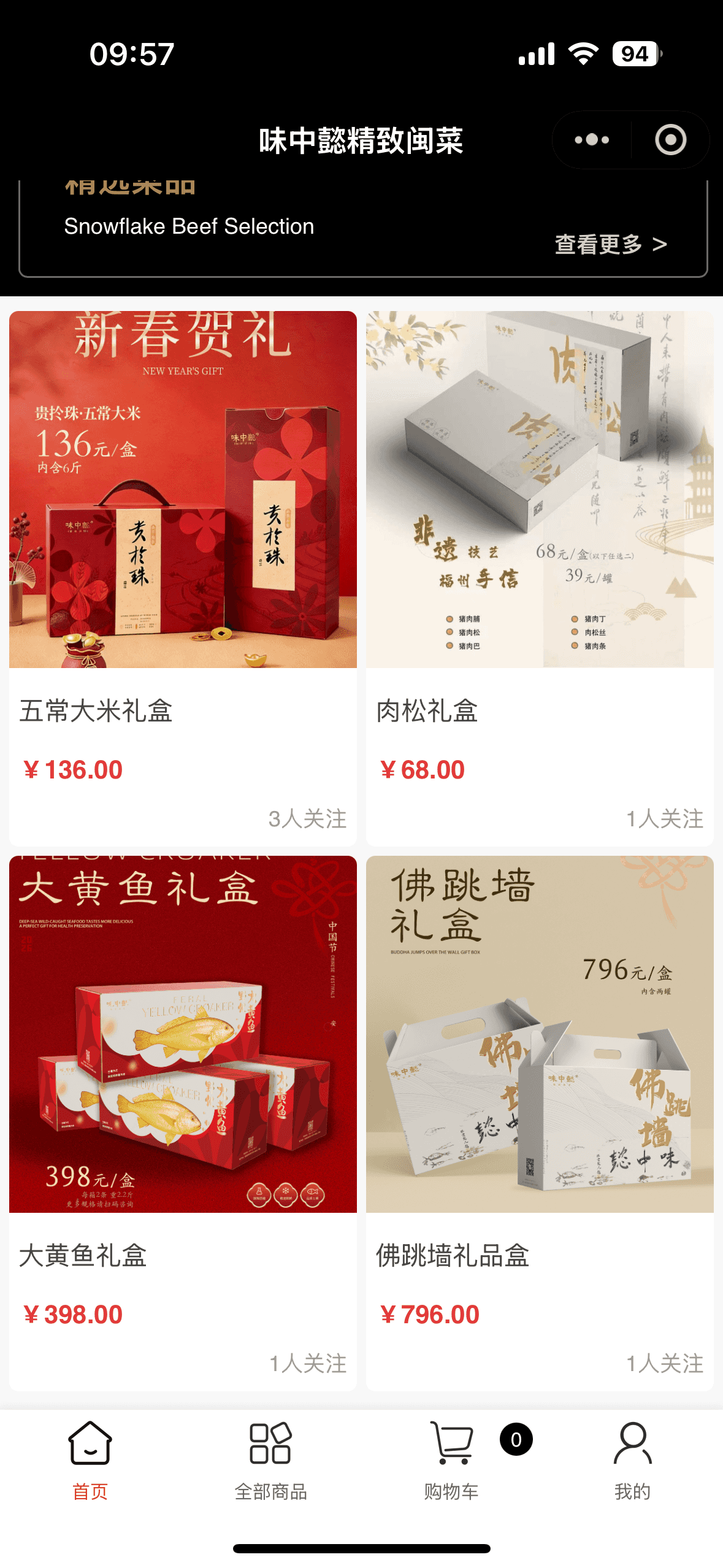 家庭聚餐:选择“佛跳墙4人份套餐”+自提,避免配送费且享9折。
