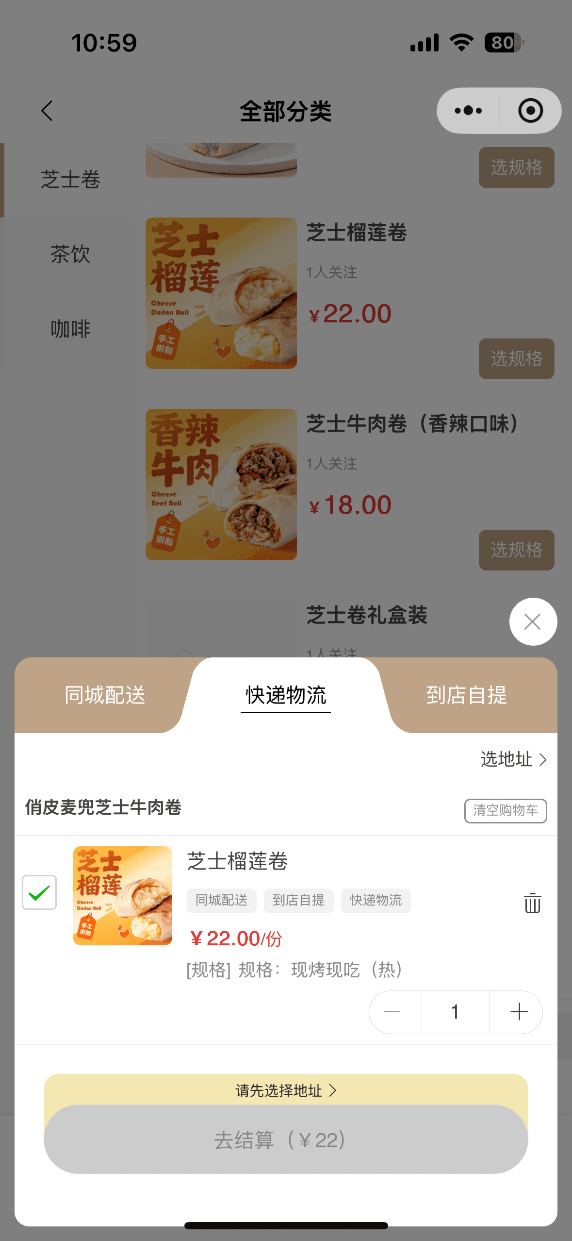 下单选择:根据需求选择“现烤现吃”“到店自提”或“快递配送”,填写收货信息并支付。