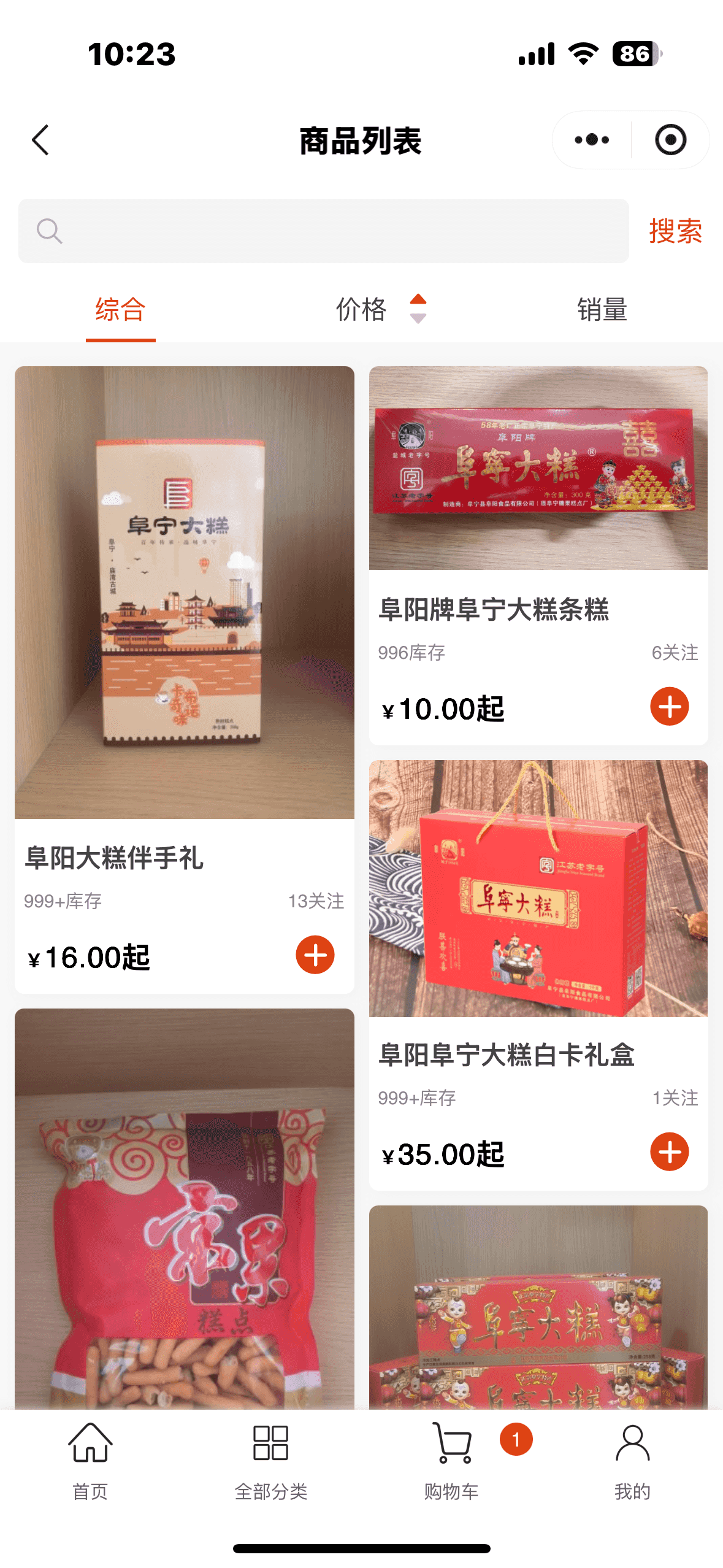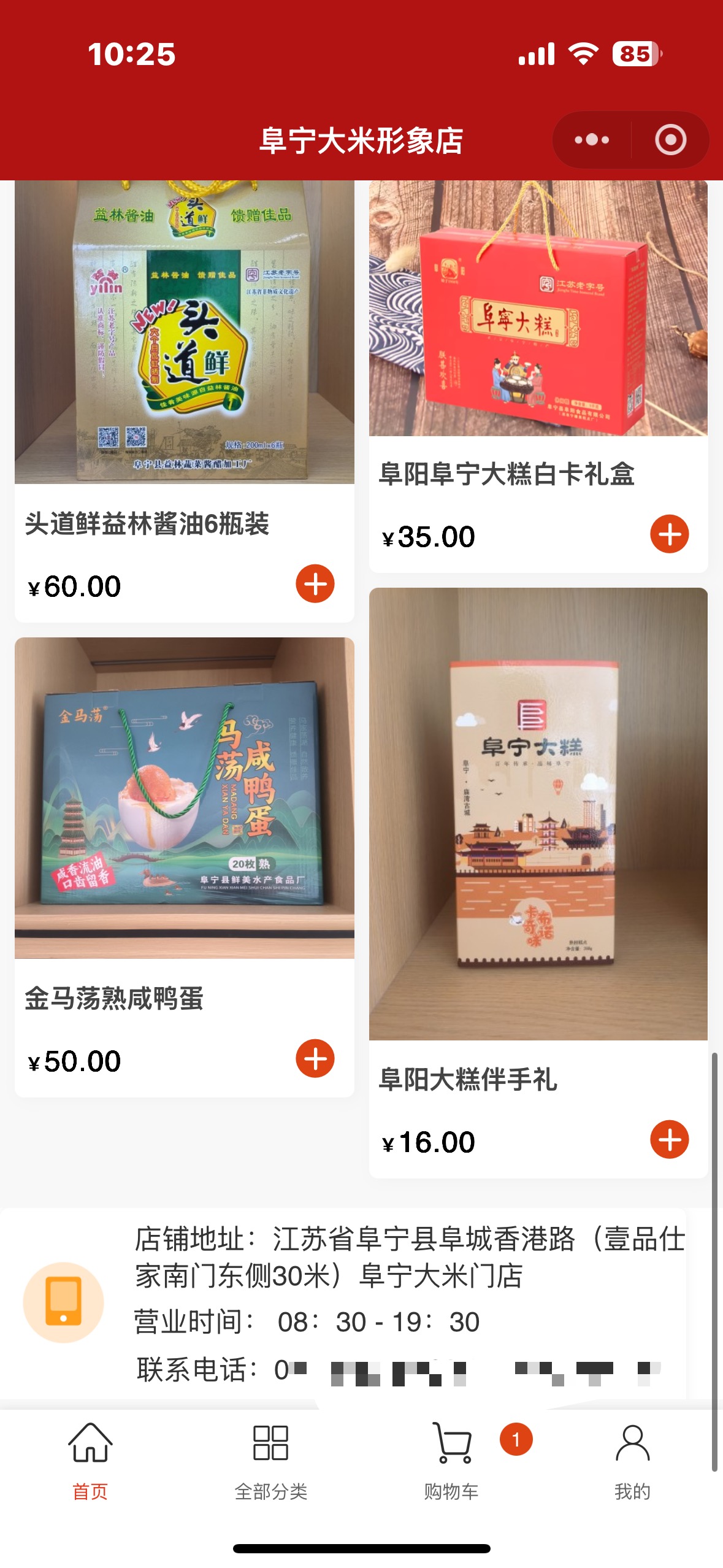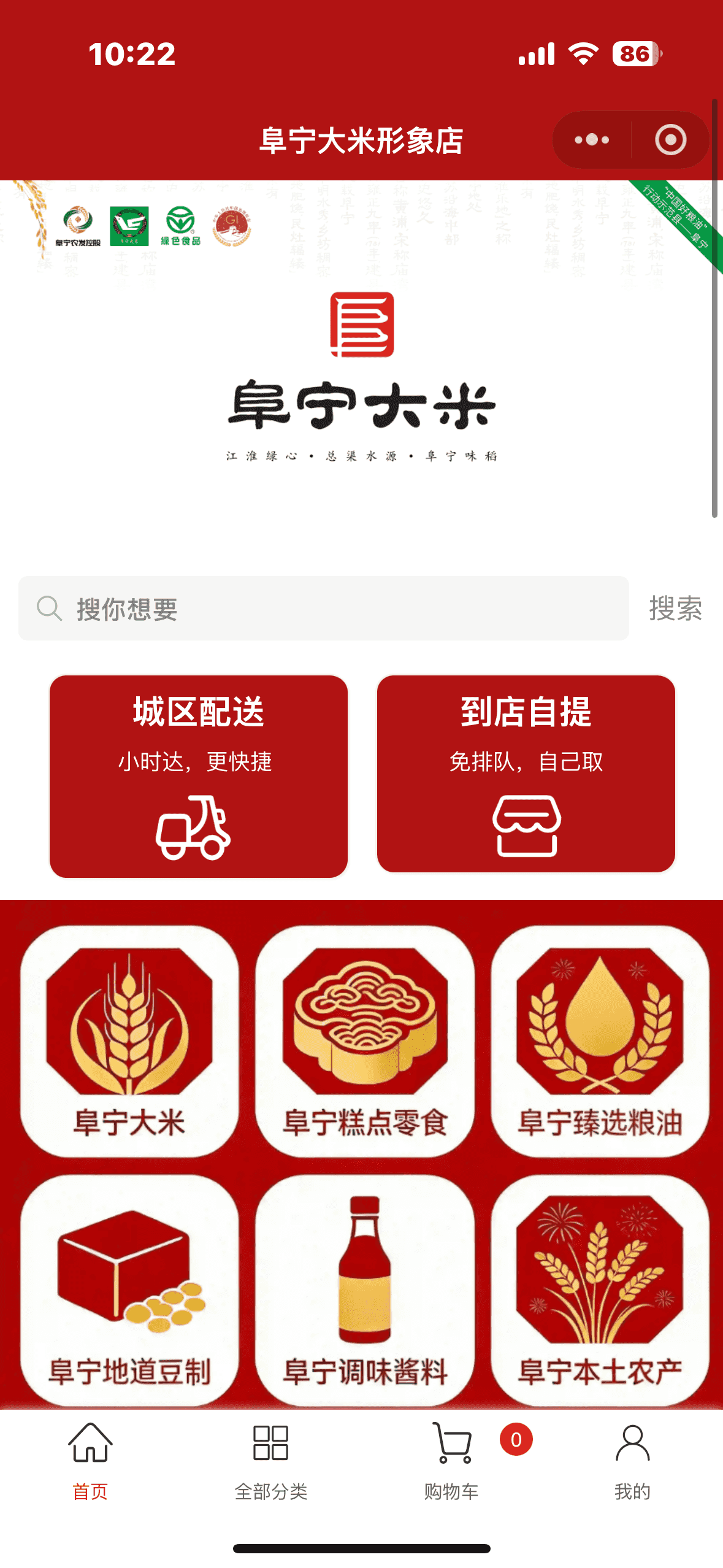 功能:首页设置图标化分类导航(如“阜宁大米”“有机杂粮”“生鲜果蔬”等),用户可快速定位目标商品。