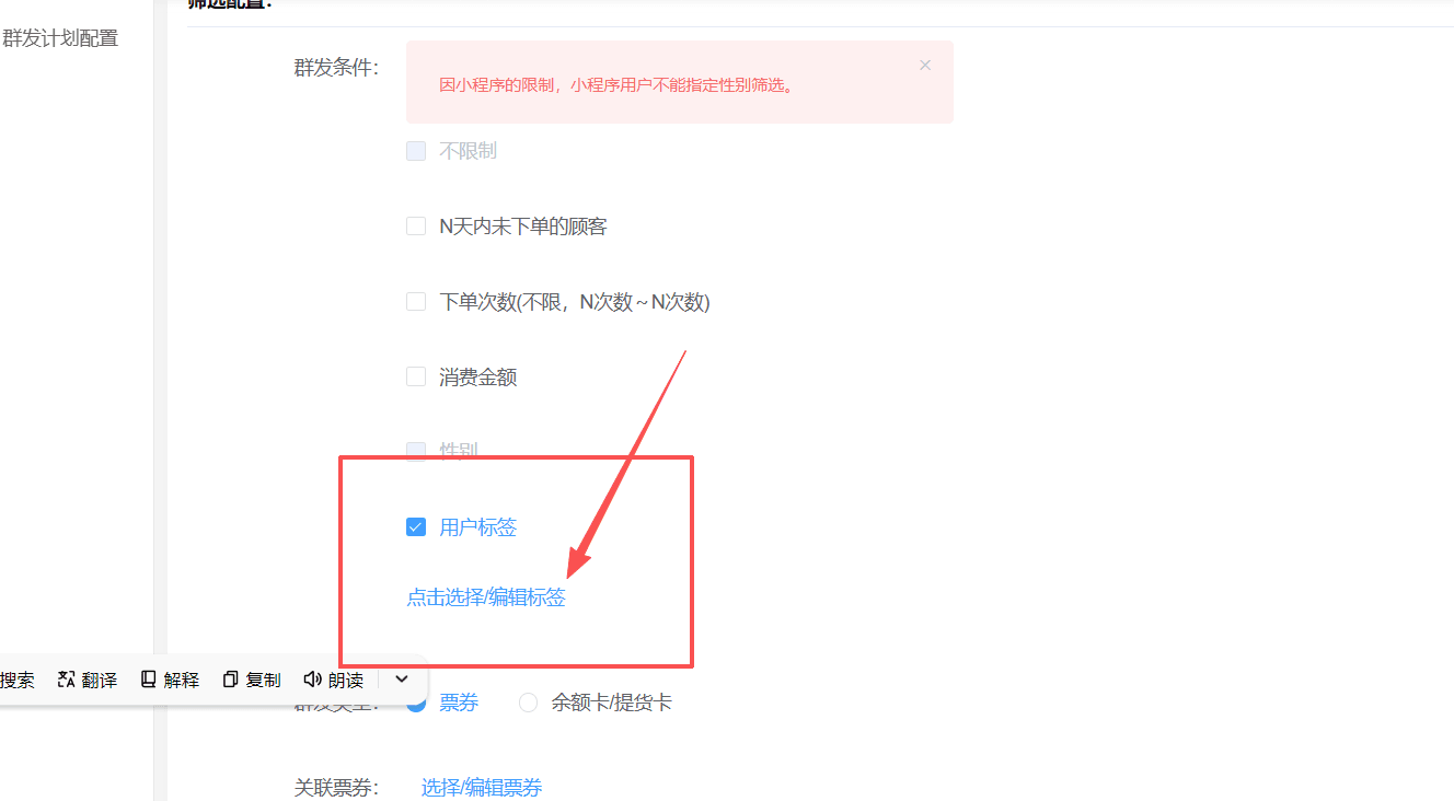 • 标签群发:商家可以根据用户标签,向特定用户群体发送个性化的消息或优惠信息,提高信息触达的精准度。