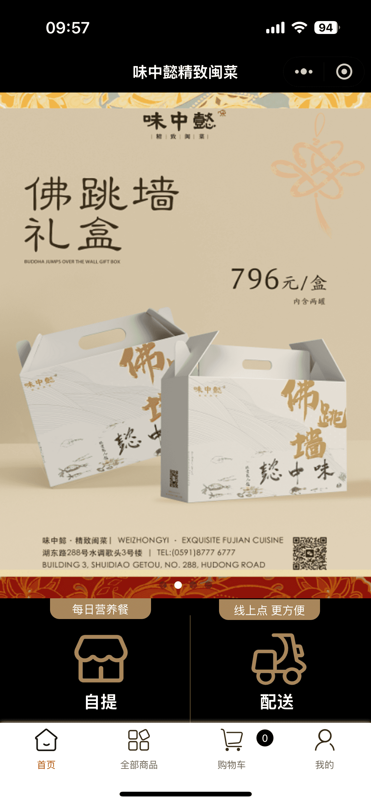 家庭聚餐:选择“佛跳墙4人份套餐”+自提,避免配送费且享9折。